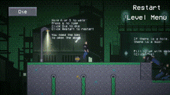 Most graphics are drawn, except for the environment and the background (most of them). Music is created by Racso. Sound effects are generated using sfxr.